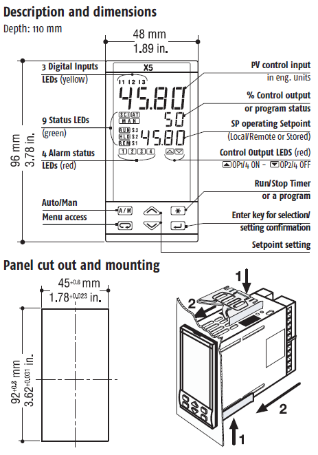 Высокотехнологичная серия универсальных контроллер-регулятор процессов X5 из линейки GammaDue от ASCON TECNOLOGIC с корпусом формата 1/8 DIN 48х96 мм, встроенными сетевыми интерфейсами PROFIBUS DP (Slave), Modbus RTU (Master/Slave изоляция портов 500 В~/1 мин) и опционально возможно подключение к сетям Modbus TCP и Profinet IO.