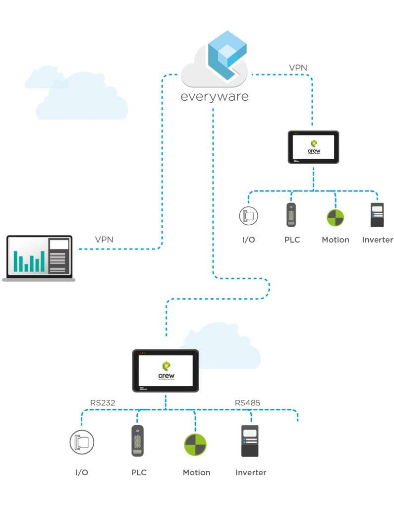 функции удаленного доступа и обслуживания, не только для самой панели оператора, но и подключенных к ней устройств;